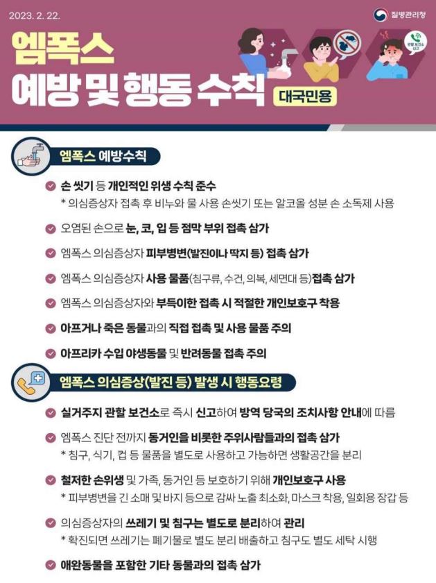 엠폭스(원숭이두창) 예방수칙 및 행동요령 안내