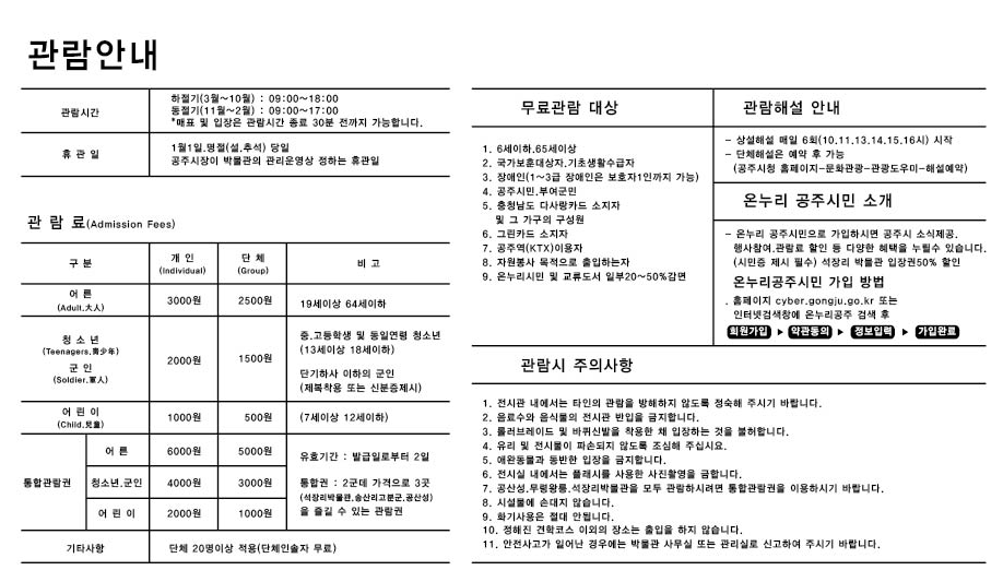 석장리박물관 관람료 징수재개 안내(5.8.~)