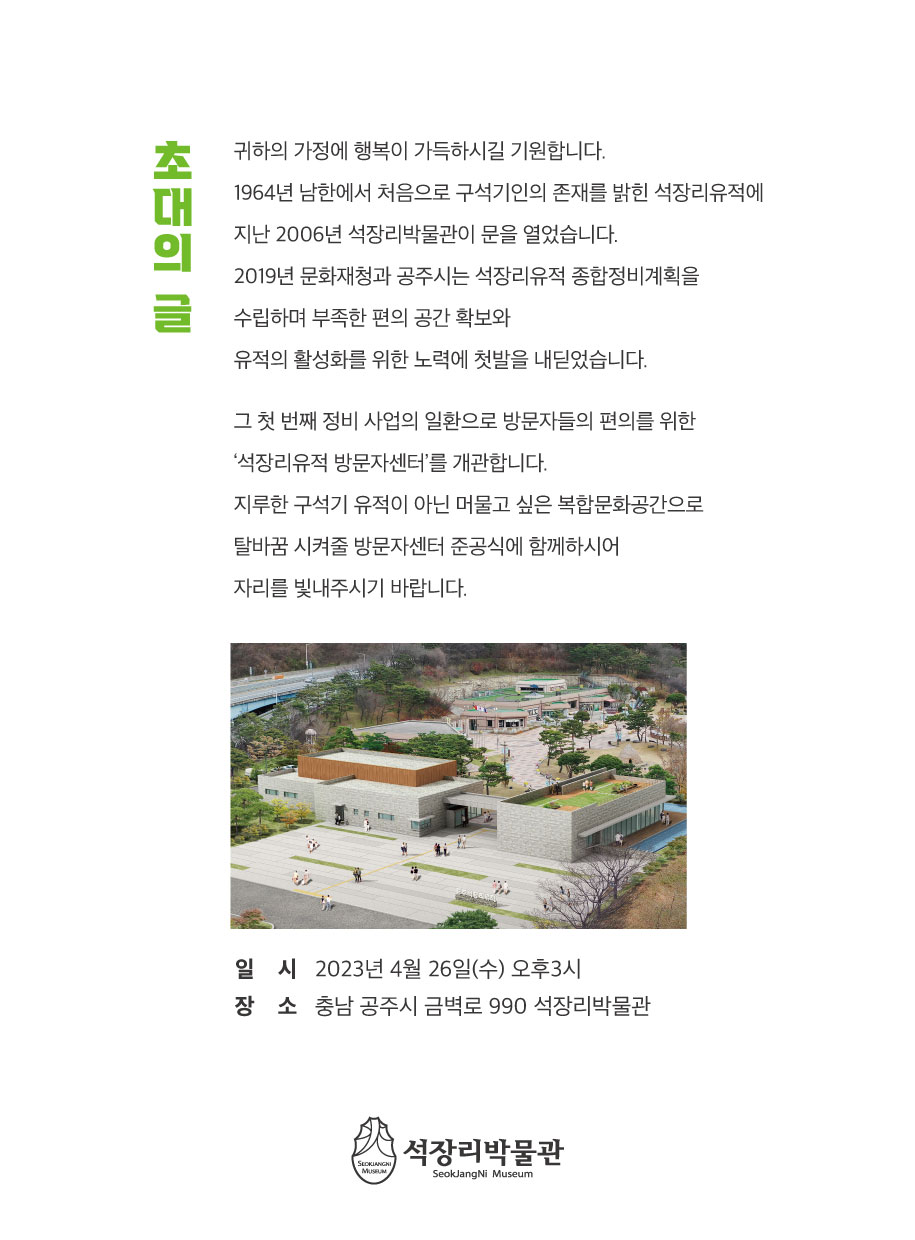 석장리박물관 방문자센터 준공식 개최 알림