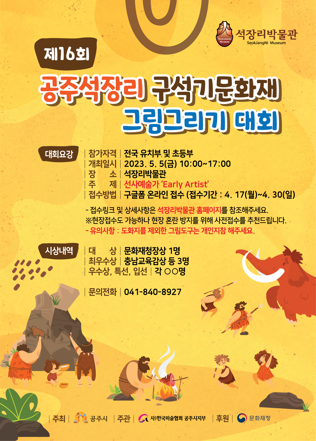 제16회 공주 석장리 구석기 문화재 그림그리기대회 개최 알림(사전접수 링크 포함) *수상작 발표: 5. 23.(화)