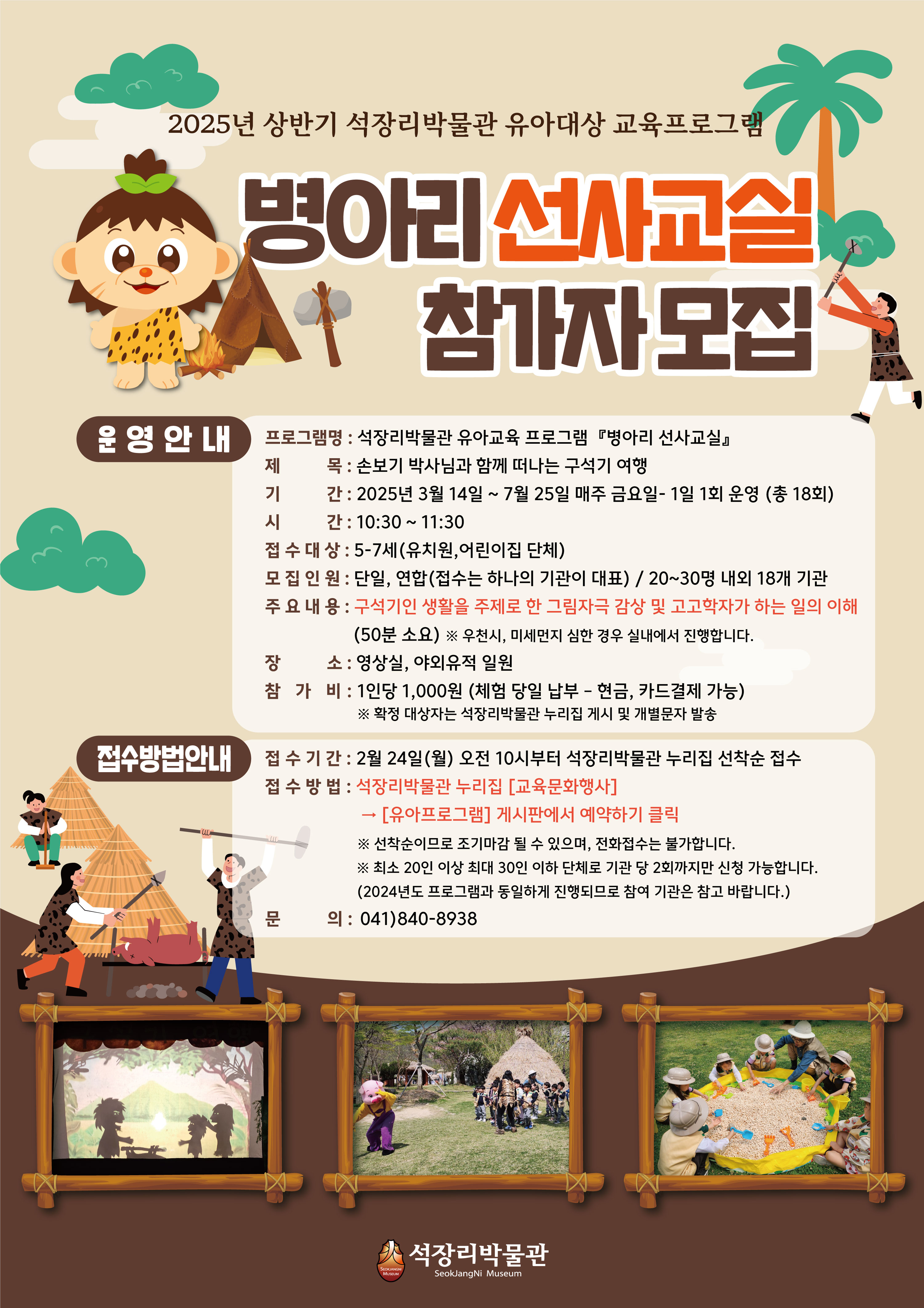 2025년 상반기 석장리박물관 유아대상 교육프로그램 병아리 선사교실 참가자 모집
