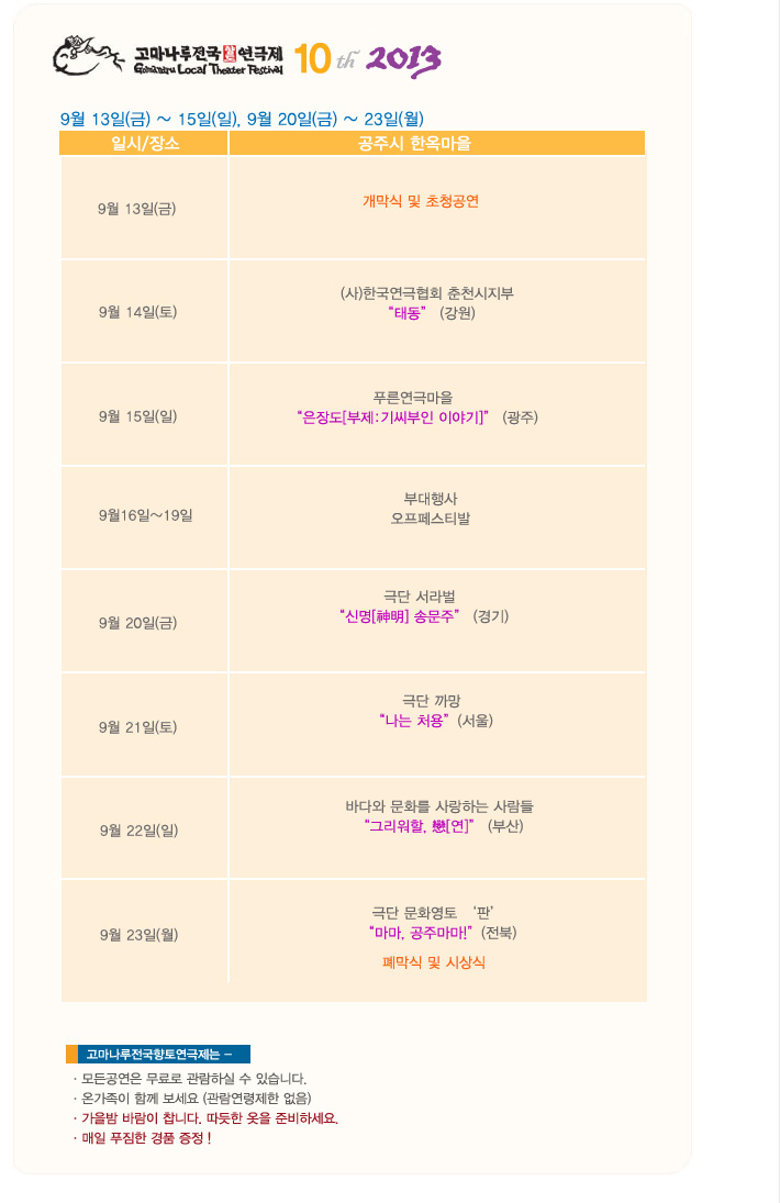 고마나루 향토 연극제가 공주 한옥마을에서 열립니다