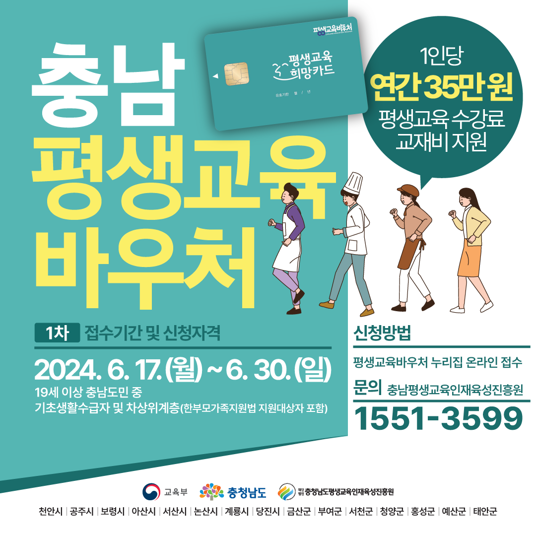 | 343 | 2024충남 평생교육바우처 이용자 모집 안내 | 평생교육과 | 941 | 2024-06-07 | 평생교육바우처_SNS배포용_002_수정(최종).png |