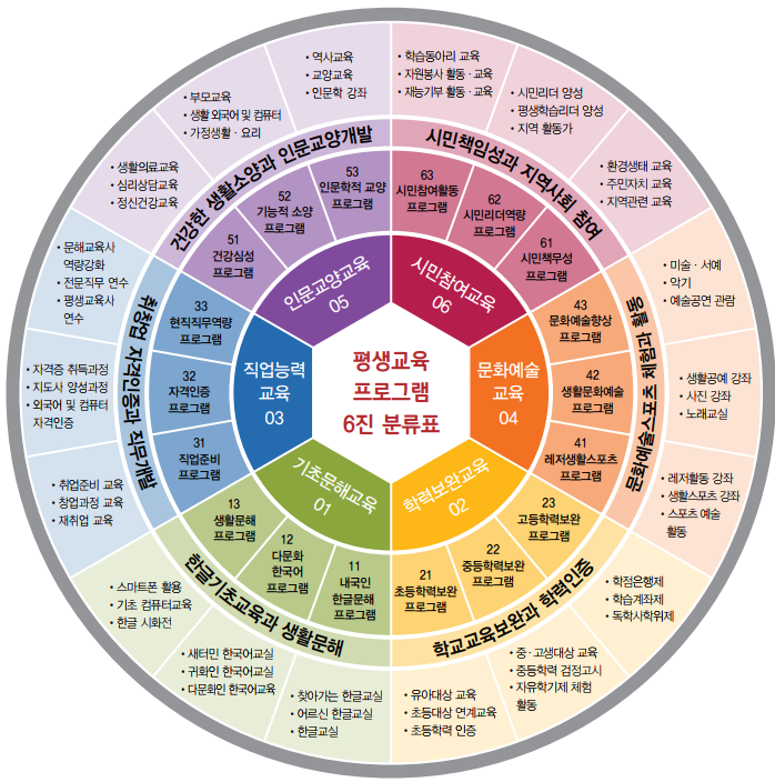 | 14 | 평생학습 프로그램 분류 유형 '6진 분류표' (참고자료) | 평생교육과 | 352 | 2024-04-30 | 6진 분류표.png |
