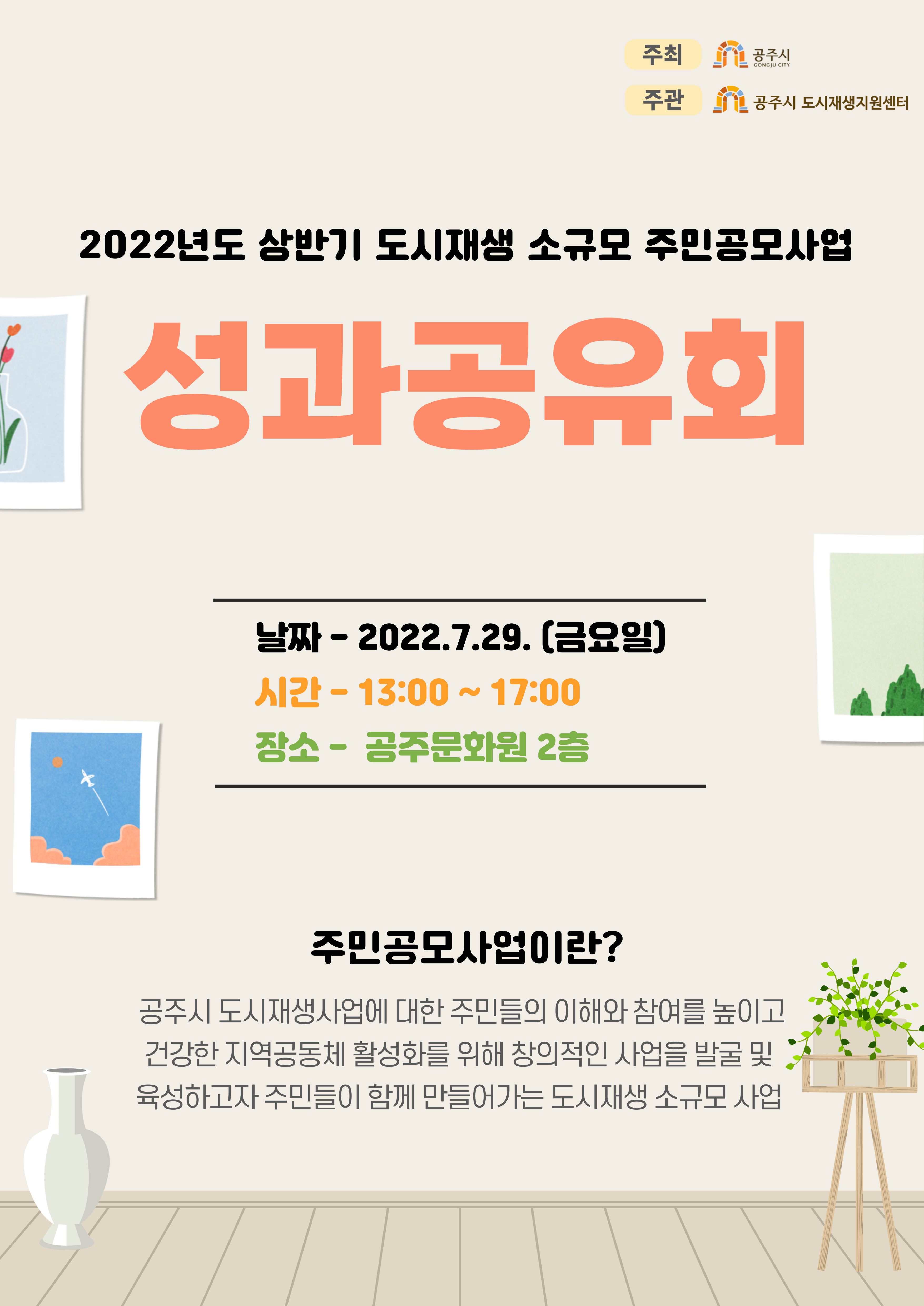 2022년 상반기 도시재생 소규모 주민공모사업 성과공유회 안내