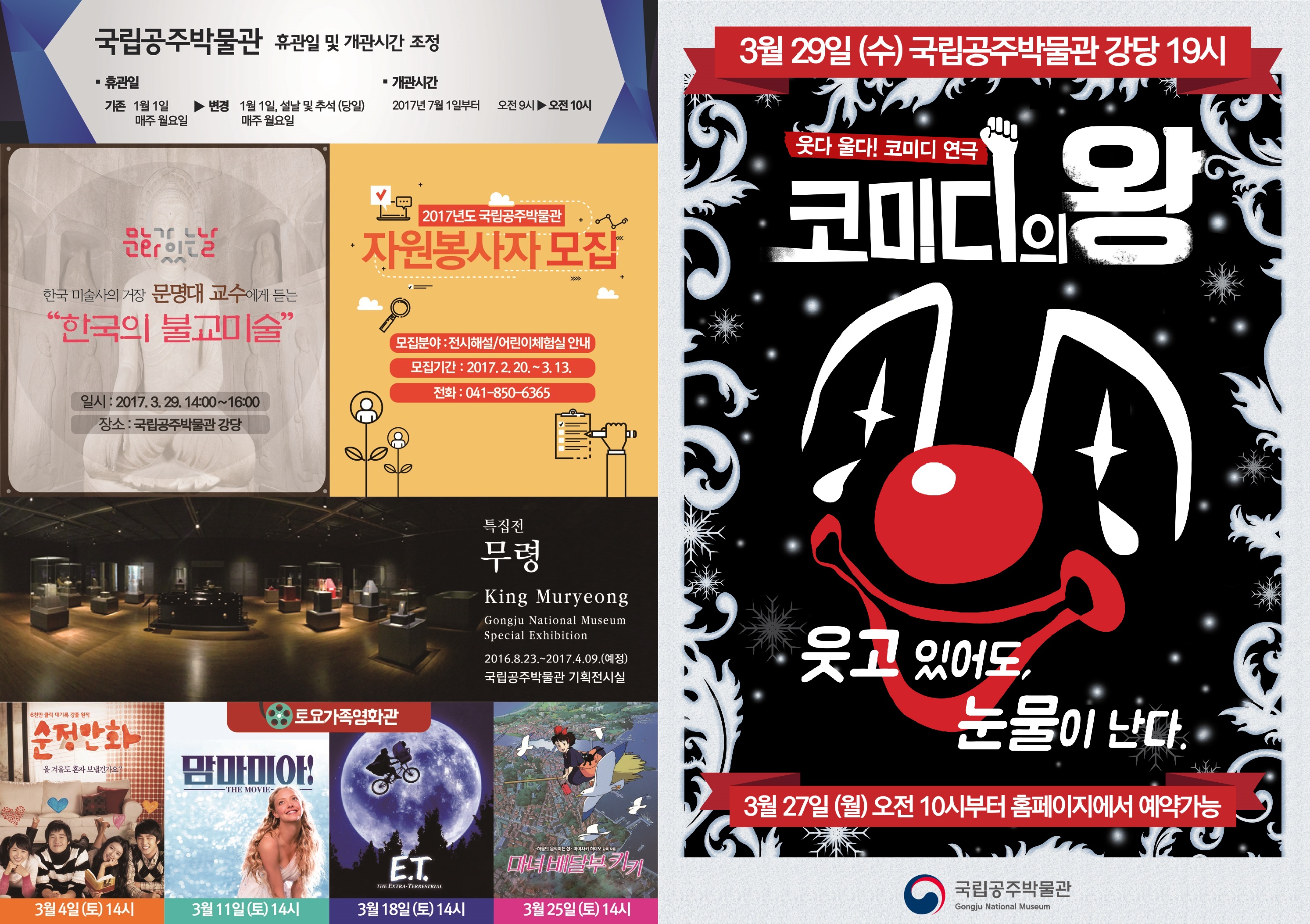 | 433 | 공주박물관 3월 문화행사 알림 | 전체관리자 | 1,724 | 2017-03-06 | 3월 리플렛.jpg |