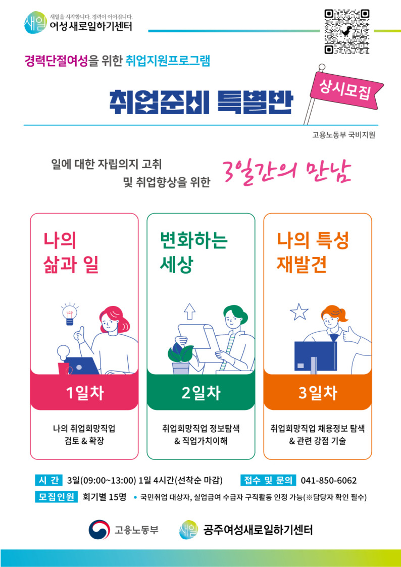 2024년 공주여성새로일하기센터 취업준비특별반(집단상담프로그램) 운영 안내