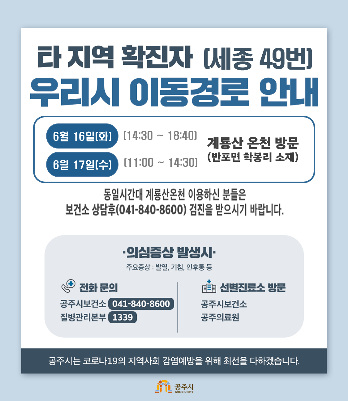 코로나19 타지역 확진자 우리시 이동경로 안내
