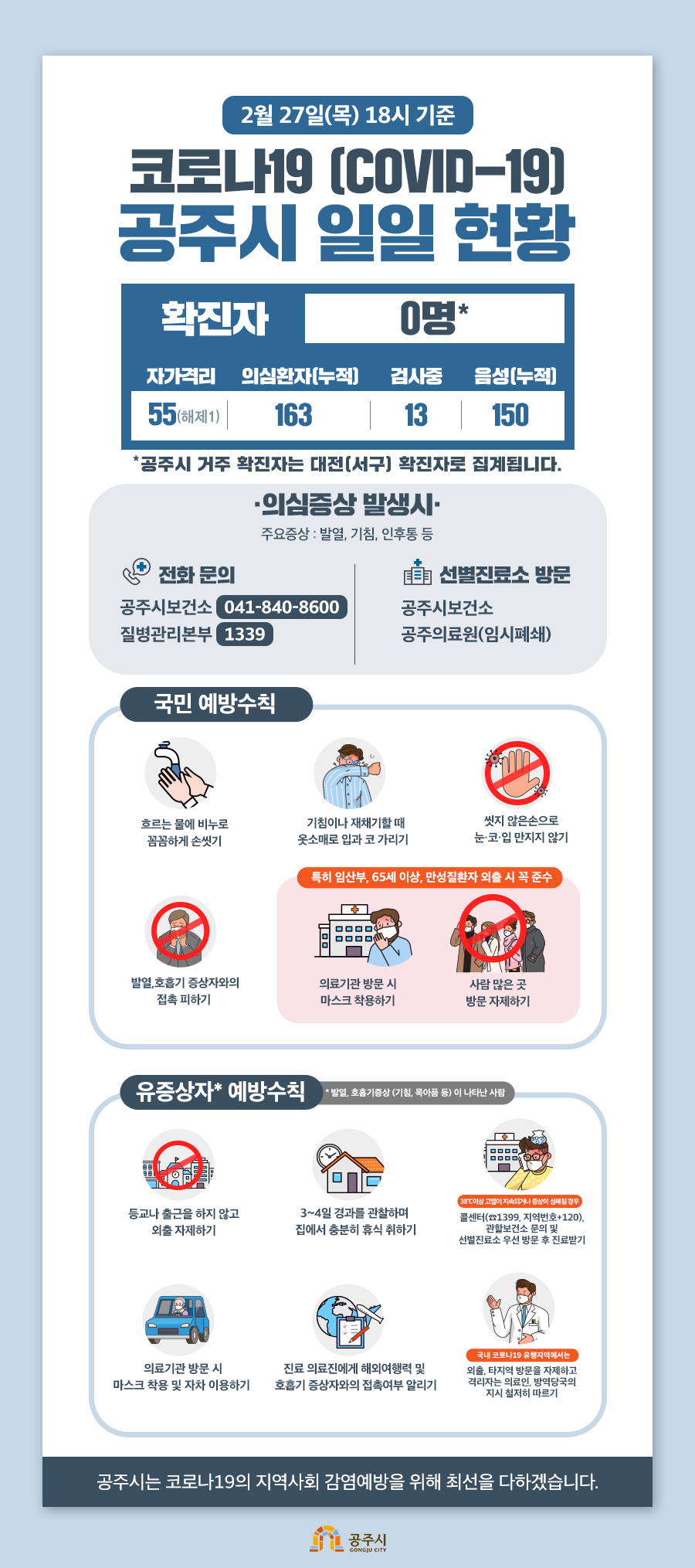 | 9026 | 코로나19 현황 2.27.(목) 18시 기준 | 관리자 | 1,863 | 2020-02-27 | 200227_공주시청_코로나_일일현황_v4.png |