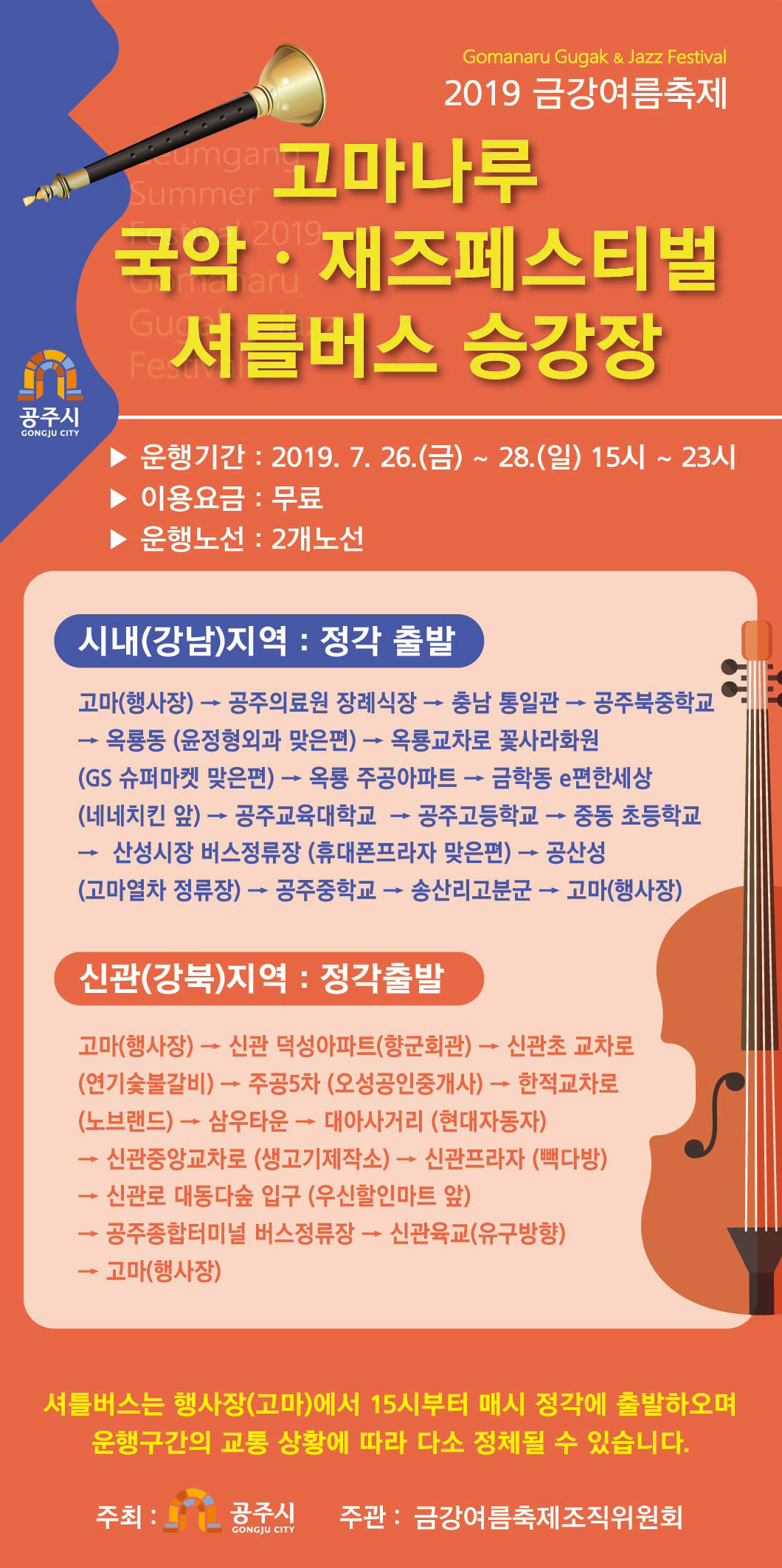 2019 금강여름축제 고마나루 국악&재즈 페스티벌 셔틀버스 운행합니다