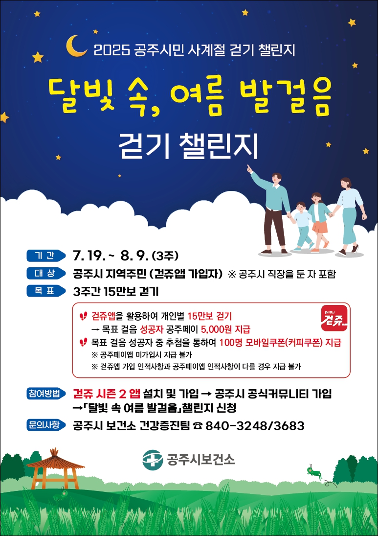 2025 공주시민 사계절 걷기 챌린지 「달빛 속 여름 발걸음」 운영