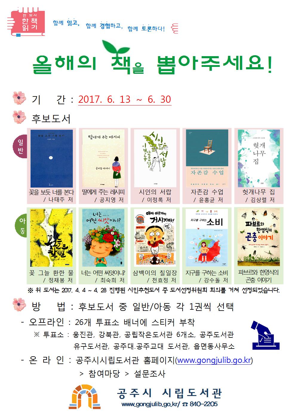 「2017 한 도시 한 책 읽기」 올해의 책을 뽑아주세요.