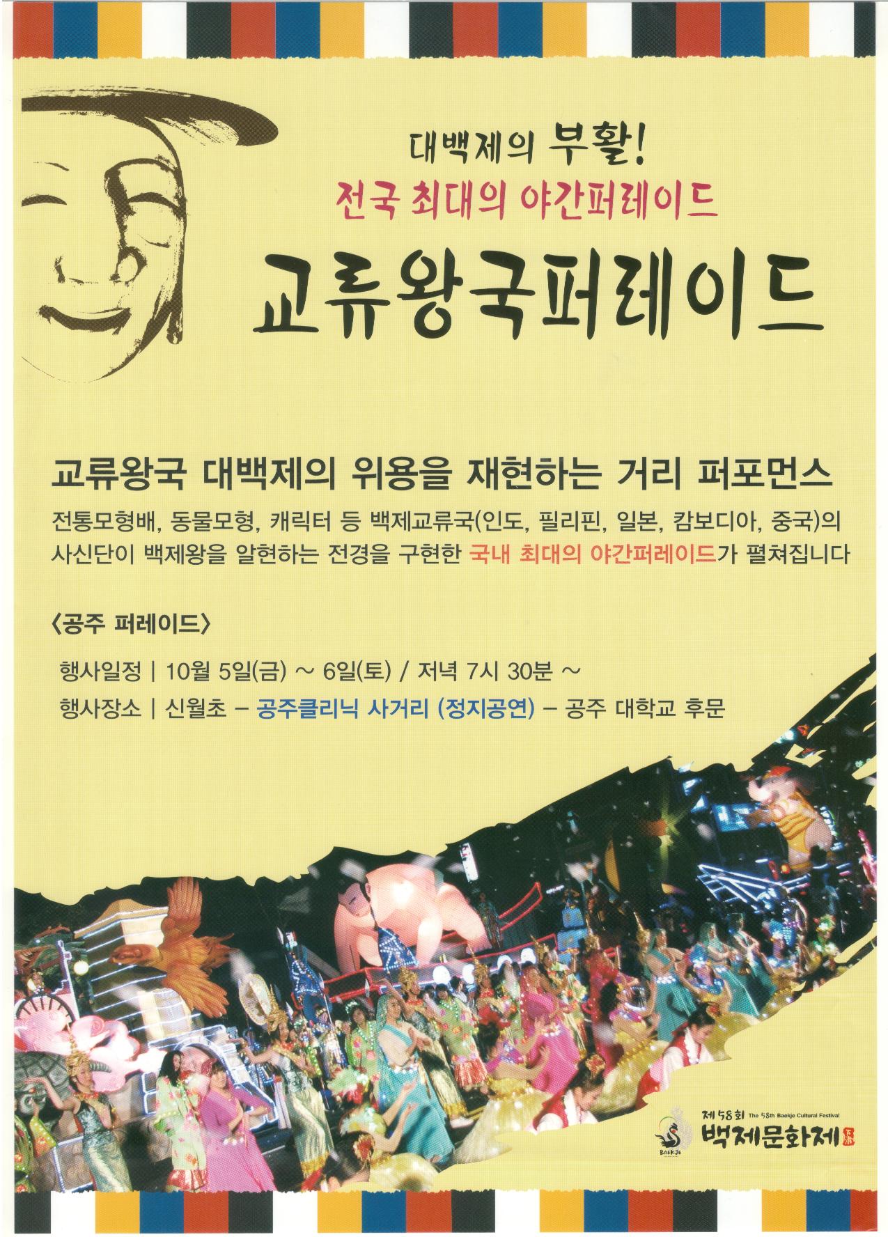 | 4963 | 국내 최대의 야간퍼레이드 "교류왕국 퍼레이드 대백제"가 펼쳐집니다 | 김성보 | 441 | 2012-10-04 | b_030201_20121004133645_0_694.jpg |