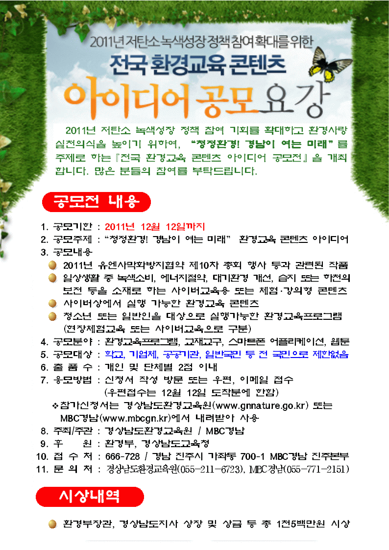 | 4286 | 전국 환경교육콘텐츠 아이디어 공모 알림 | 신미정 | 227 | 2011-10-27 | b_030201_20111027110524_0_602.gif |