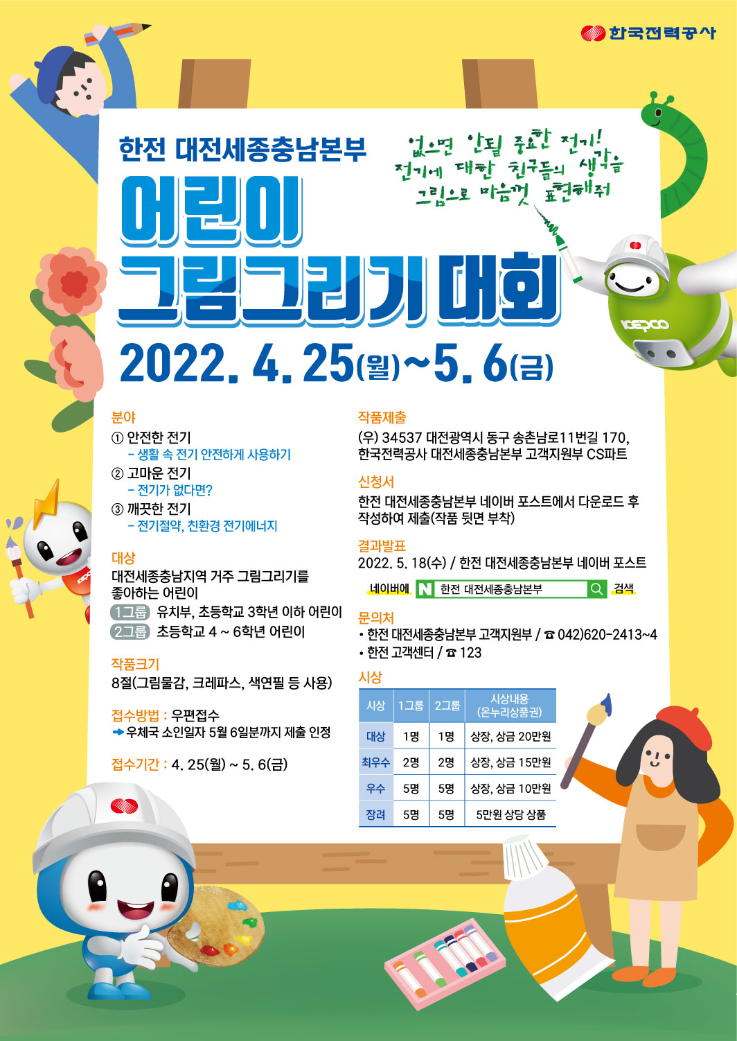 | 846 | 한전 대전세종충남본부 어린이 그림그리기 대회 | 전체관리자 | 172 | 2022-04-28 | 사본 -한전대전세종충남본부 어린이그림그리기대회 포스터.jpg |