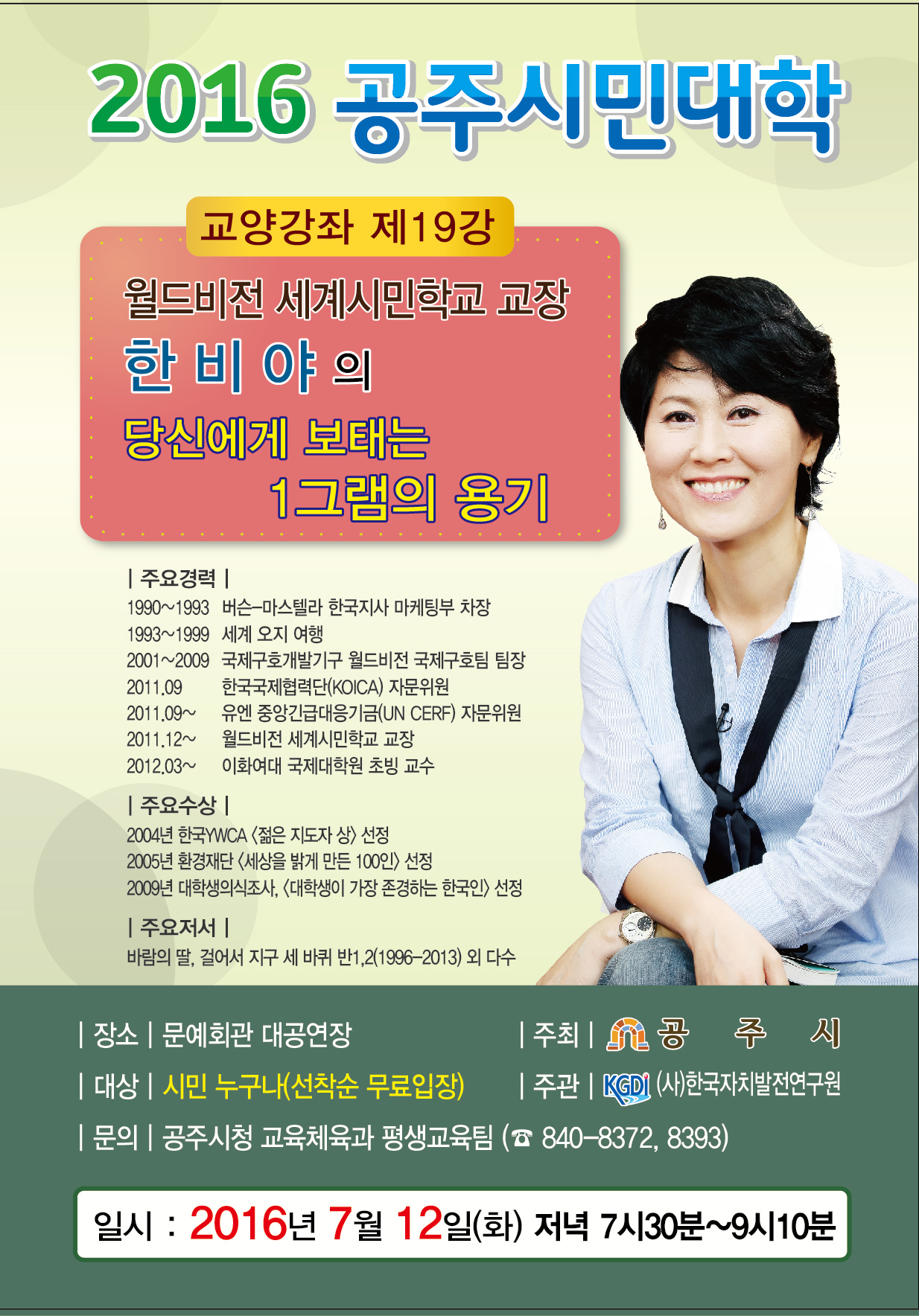 | 229 | 2016년 흥미진진, 공주시민대학 홍보 | 유구읍 | 695 | 2016-07-01 | 전단지_19강_한비야.jpg |