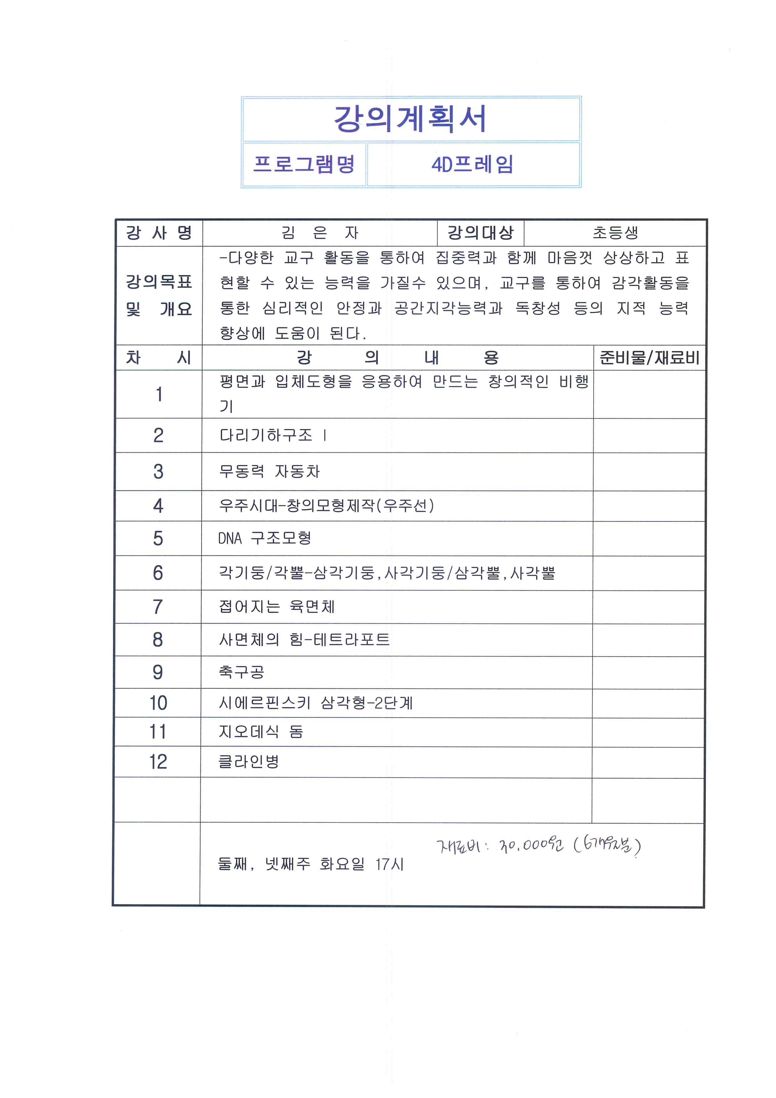 | 325 | 계룡책향기 작은도서관 프로그램 운영 안내(4D 프레임) | 계룡면 총무팀 | 272 | 2018-02-27 | 4D프레임 강의계획서.jpg |