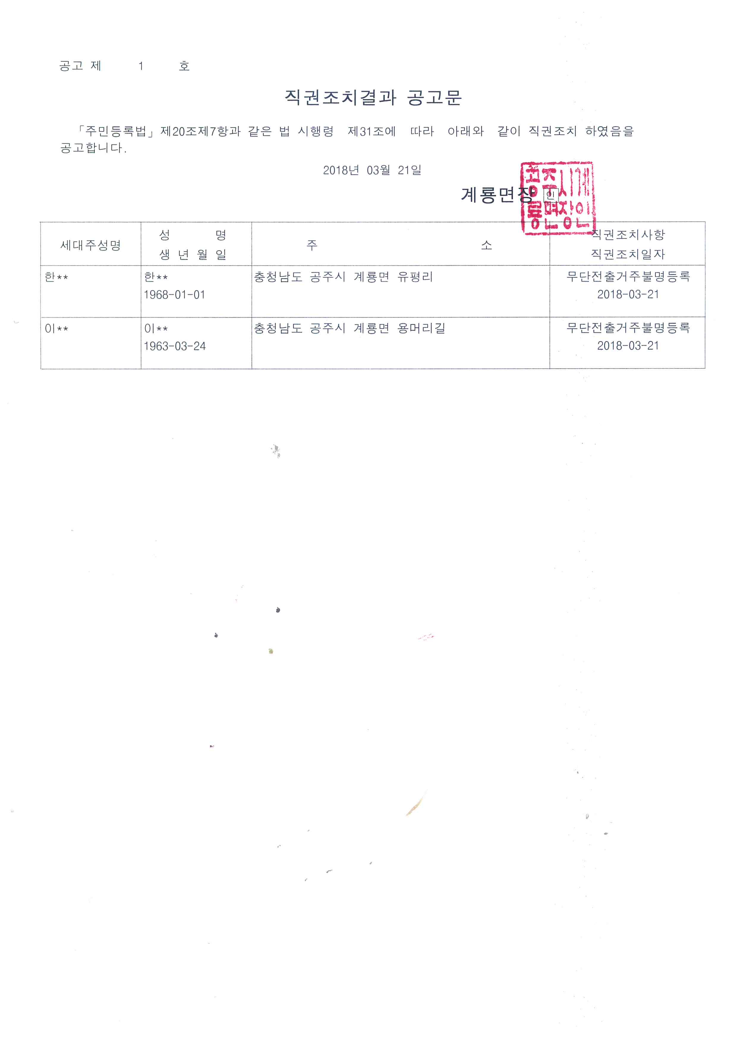 | 328 | 주민등록 거주불명등록 직권조치 결과공고 | 총무 | 161 | 2018-03-22 | 직권조치결과 공고문.jpg |