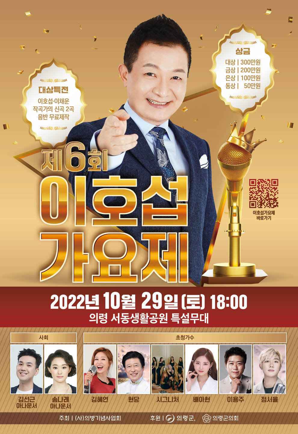 | 281 | 「제6회 이호섭 가요제」개최 알림 및 홍보 | 우성면 | 85 | 2022-10-19 | 제6회 이호섭가요제 포스터.jpg |