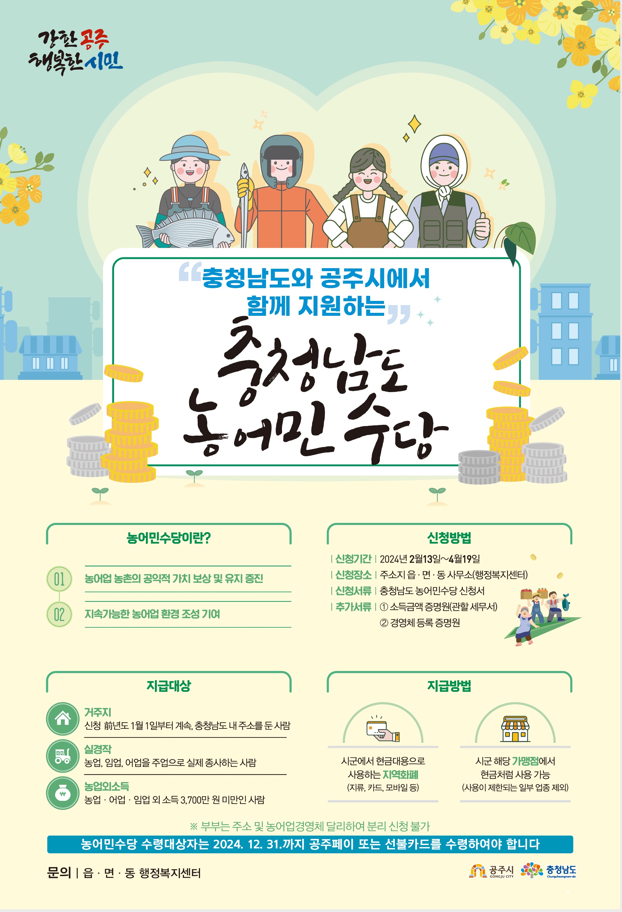 | 932 | 2024년도 충청남도 농어미수당 지원사업 신청 알림 | 사곡면 | 32 | 2024-02-17 | 농어민수당 포스터.jpg |