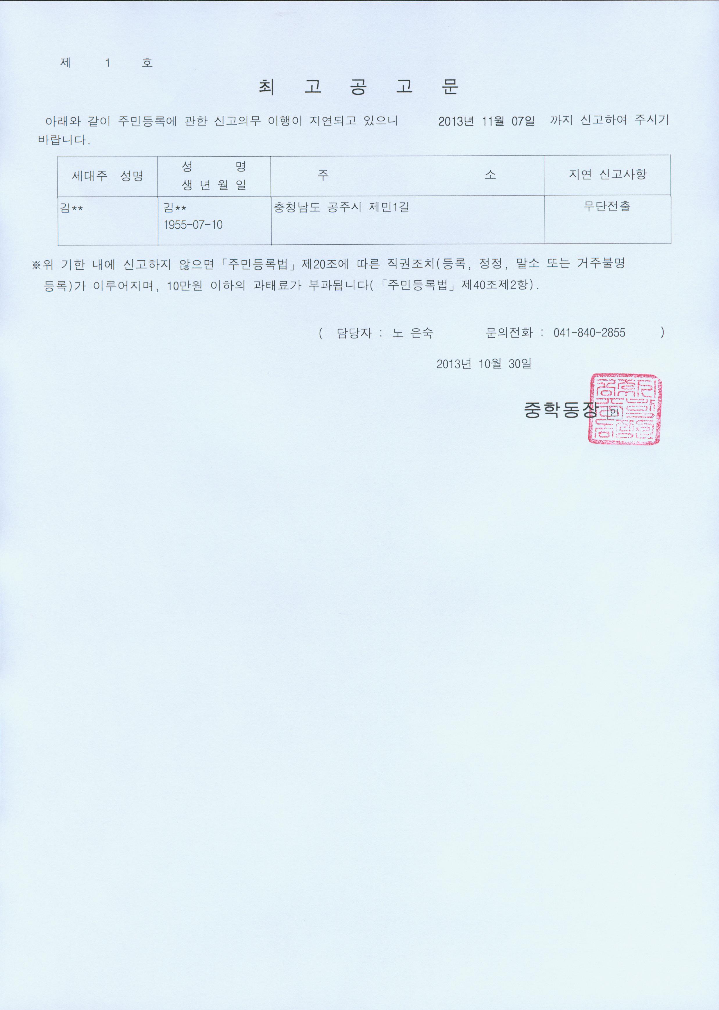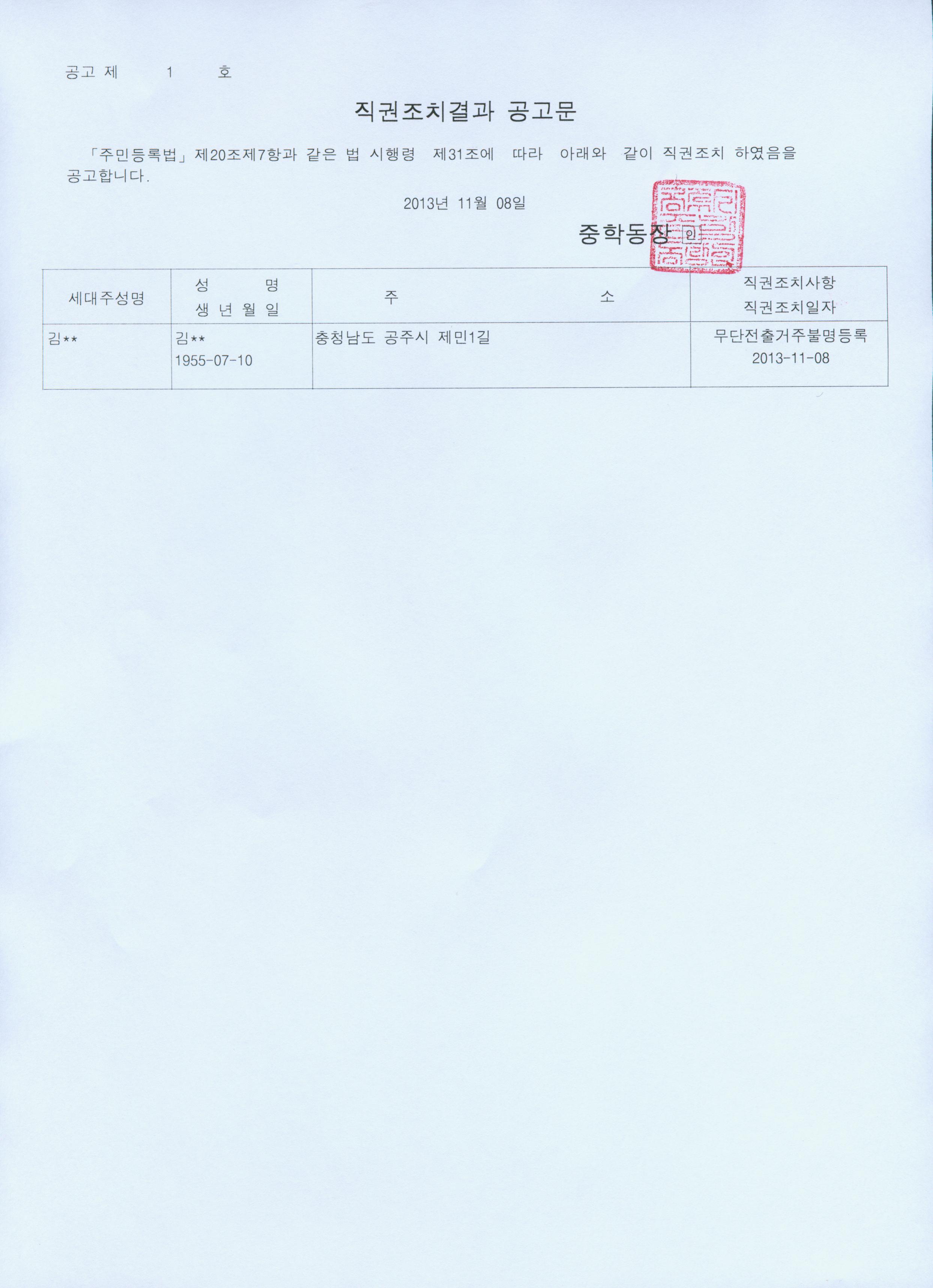 | 41 | 주민등록 무단전출자 직권조치 및 공고 | 중학동 | 1,191 | 2013-11-08 | 직권조치결과 공고문.jpg |