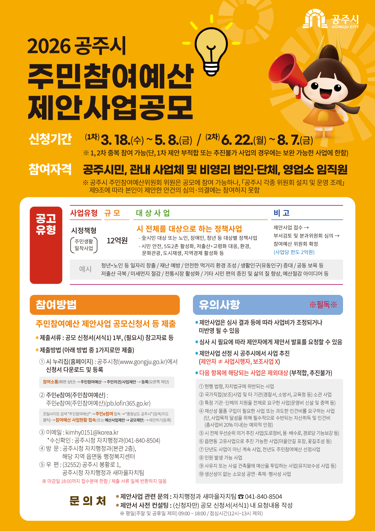 | 1025 | 2026년 공주시 주민참여예산 제안사업공모 | 중학동 | 19 | 2026-03-20 | 2026 공주시 주민참여예산 제안사업공모.jpg |