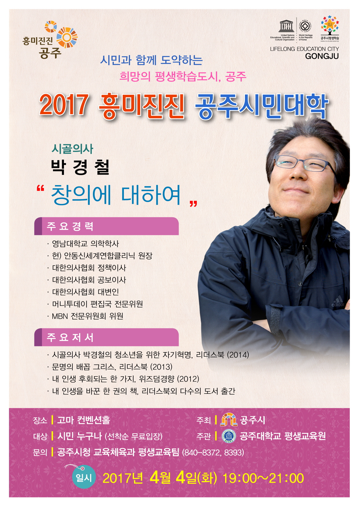| 159 | 2017 흥미진진 공주시민대학 31강 "박경철-창의에 대하여" | 중학동 | 461 | 2017-03-26 | 홍보문.jpg |