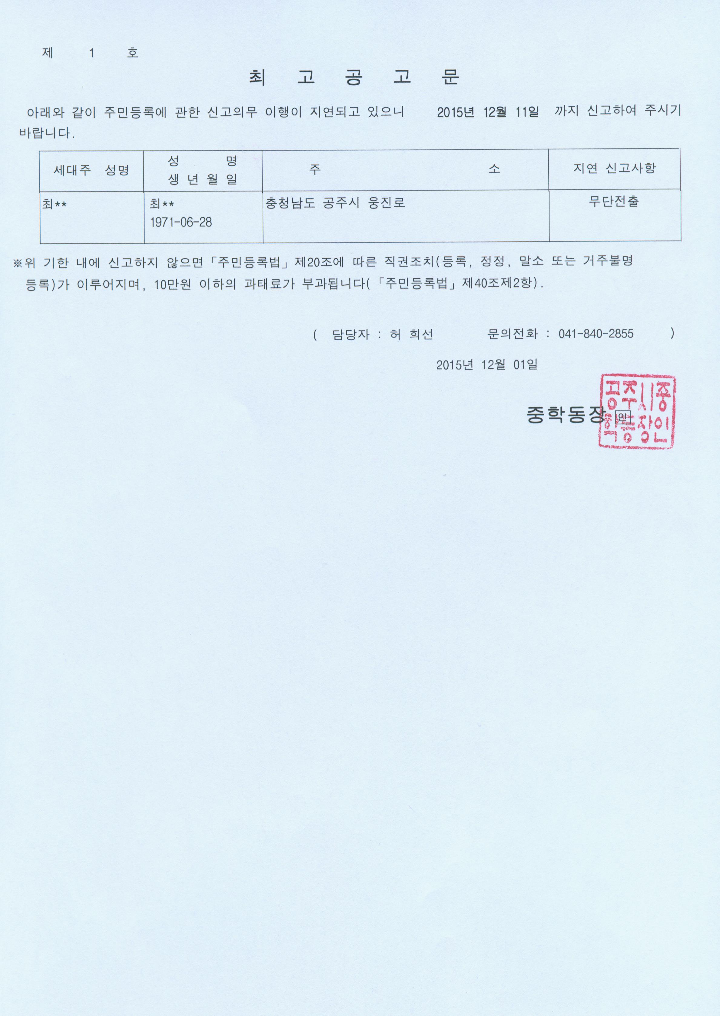 | 127 | 주민등록 최고공고(공주시 중학동 공고 제2015-3호) | 중학동 | 1,608 | 2015-12-01 | 최고공고문.jpg |