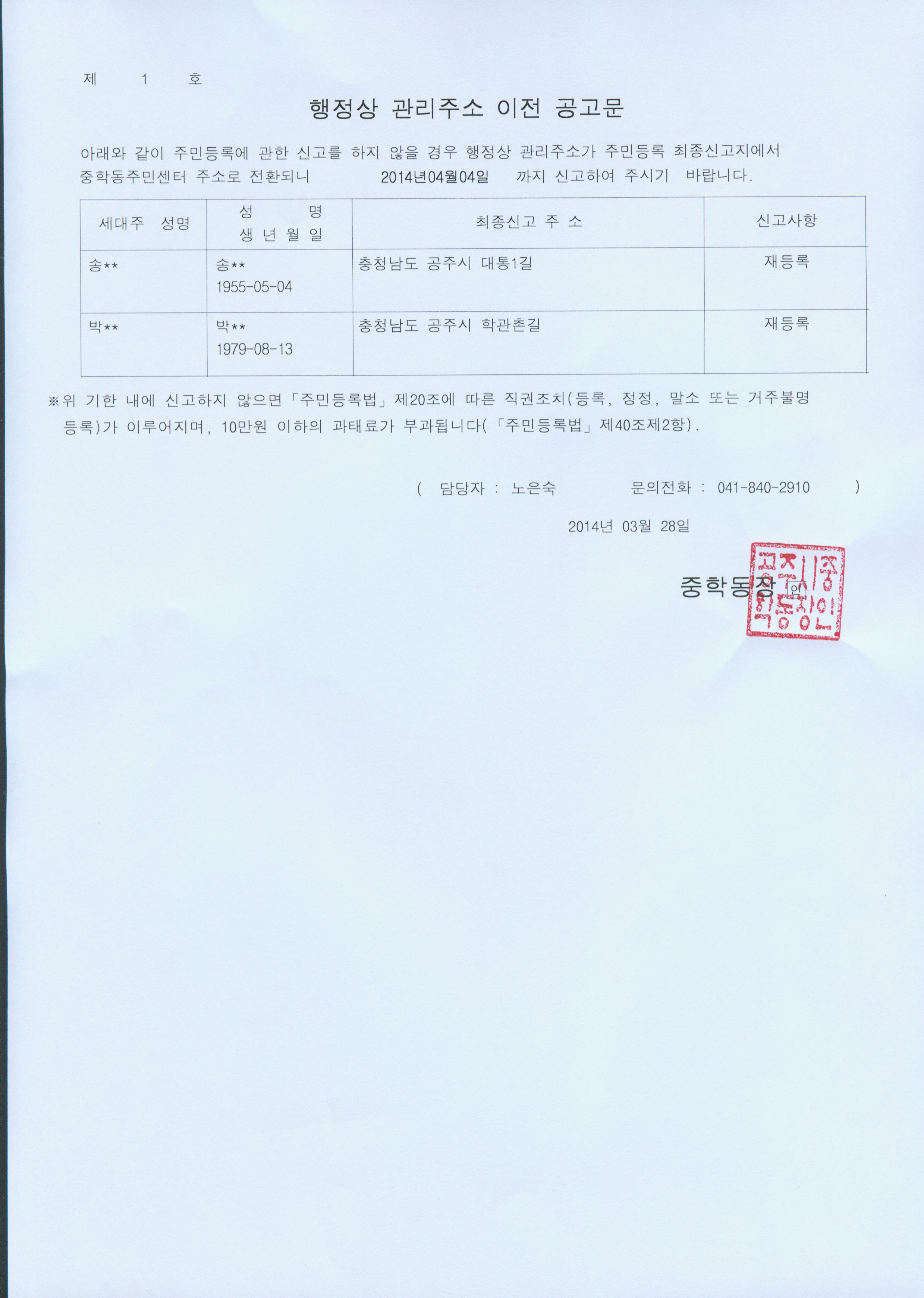 | 97 | 행정상 관리주소 이전 공고 | 중학동 | 1,356 | 2014-03-28 | 행정상 관리주소 이전 공고문.jpg |