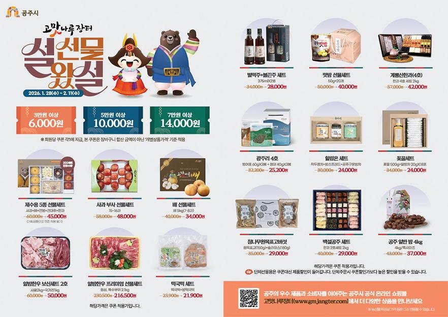 | 1862 | 2026년 공주시「고맛나루장터」설맞이 기획전 안내 | 웅진동 | 34 | 2026-01-28 | 설맞이 기획전 홍보물.jpg |