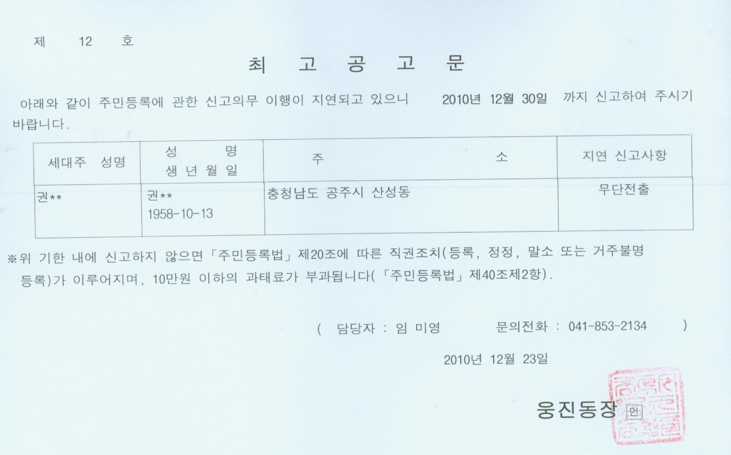 | 170 | 주민등록 최고공고 | 관리자 | 457 | 2010-12-23 | 최고공고문(12호).jpg |