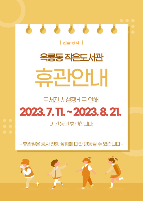 | 710 | 공주시 옥룡동 작은도서관 휴관 알림 | 옥룡동 | 66 | 2023-07-11 | 옥룡동 작은도서관 휴관알림.jpg |