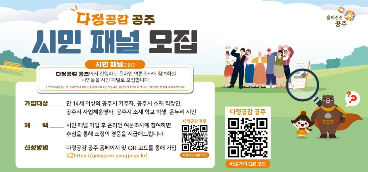 | 988 | 시민소통 플랫폼 '다정공감 공주' 시민패널 모집 | 옥룡동 | 68 | 2025-07-08 | 1.png |