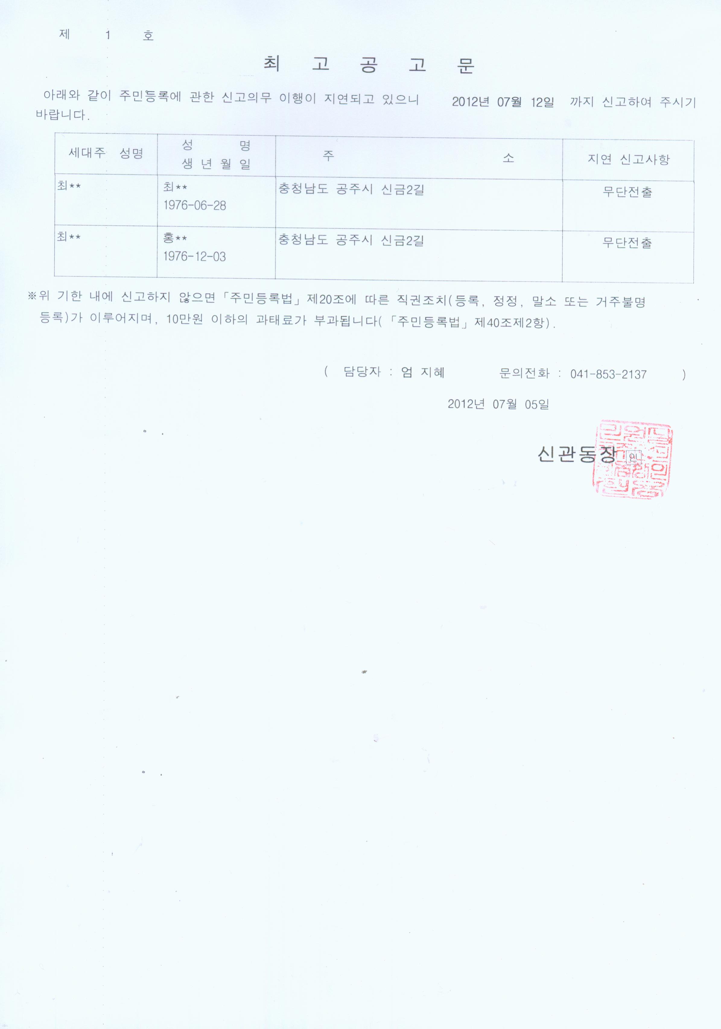 | 64 | 무단전출에 대한 최고공고문 | 관리자 | 709 | 2012-07-05 | 최고.jpg |