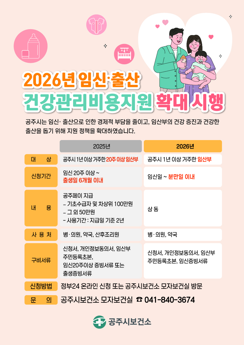 | 1530 | 2026년 임신 출산 건강관리비용지원 확대 시행 | 신관동 | 453 | 2025-12-18 | 임신출산지원 변경 전단지.jpg |