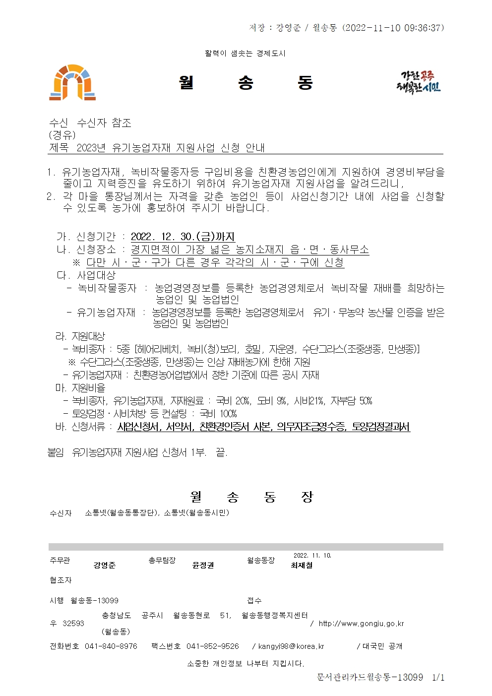 | 418 | 2023년 유기농업자재 지원사업 신청 안내 | 월송동 | 27 | 2022-11-11 | 2023년 유기농업자재 지원사업 신청 안내001.jpg |