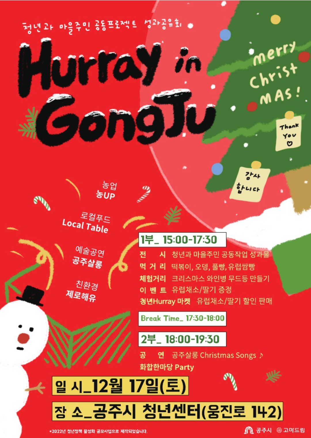 | 35 | 청년과 마을주민 공동프로젝트 성과공유회 개최(Hurry in Gongju) | 여성가족과 | 174 | 2022-12-15 | 포스터.png |