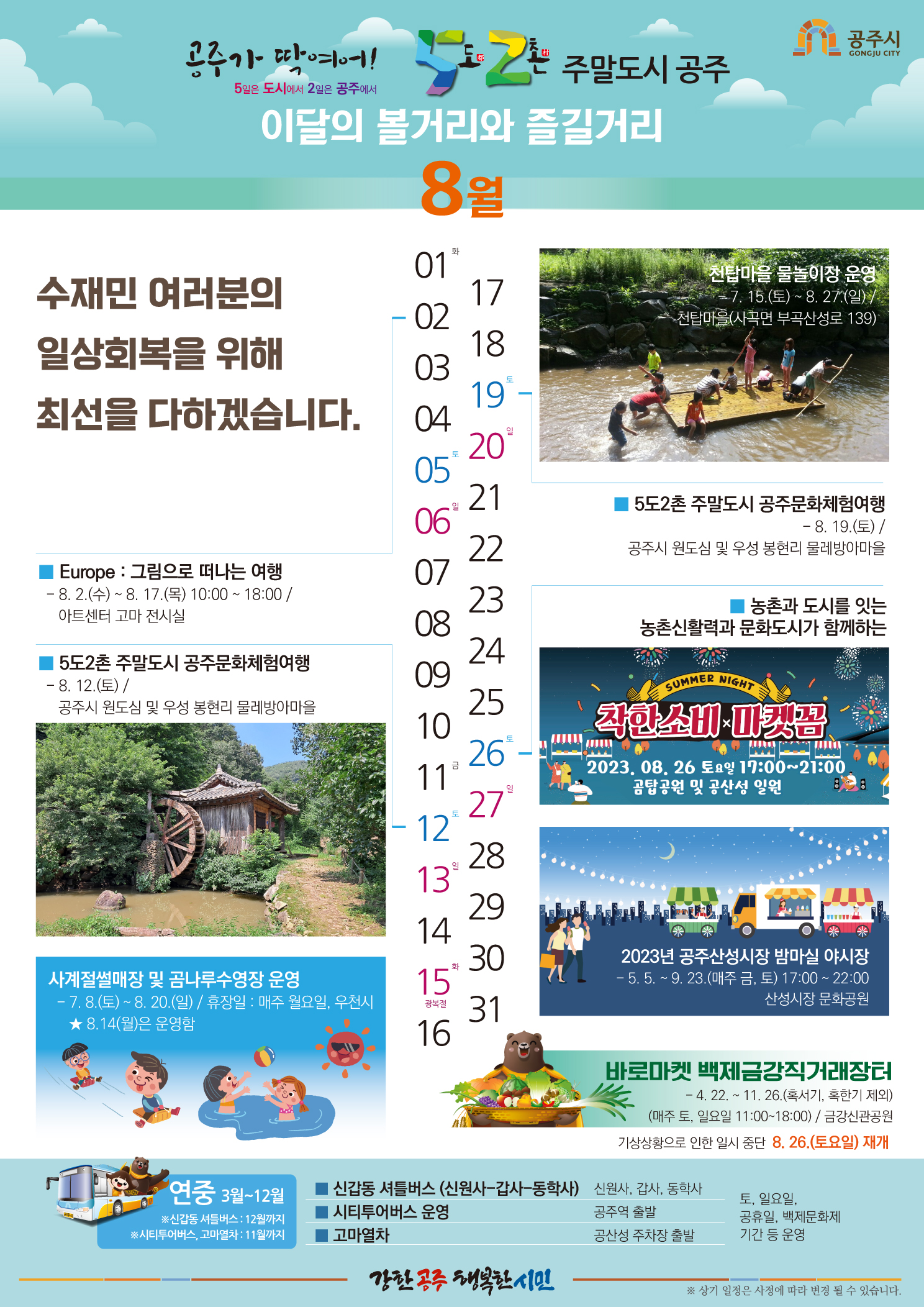 각종 공연, 체험프로그램 등 즐길거리가 넘치는 공주의 주말로 여러분을 초대합니다