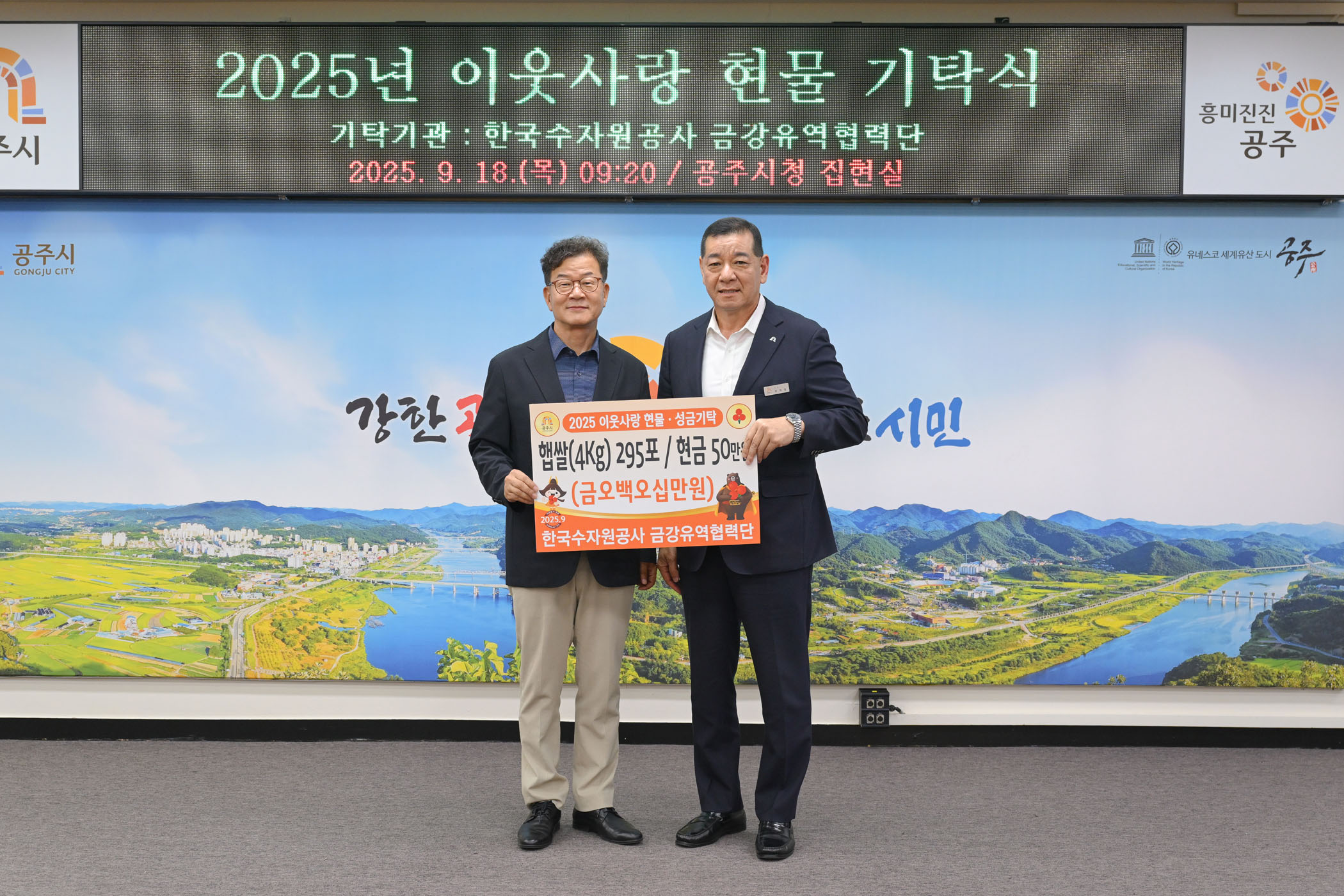 2025년 9월 18일 이웃사랑 현물 기탁식 한국수자원공사 금강유역협력단 [집현실]