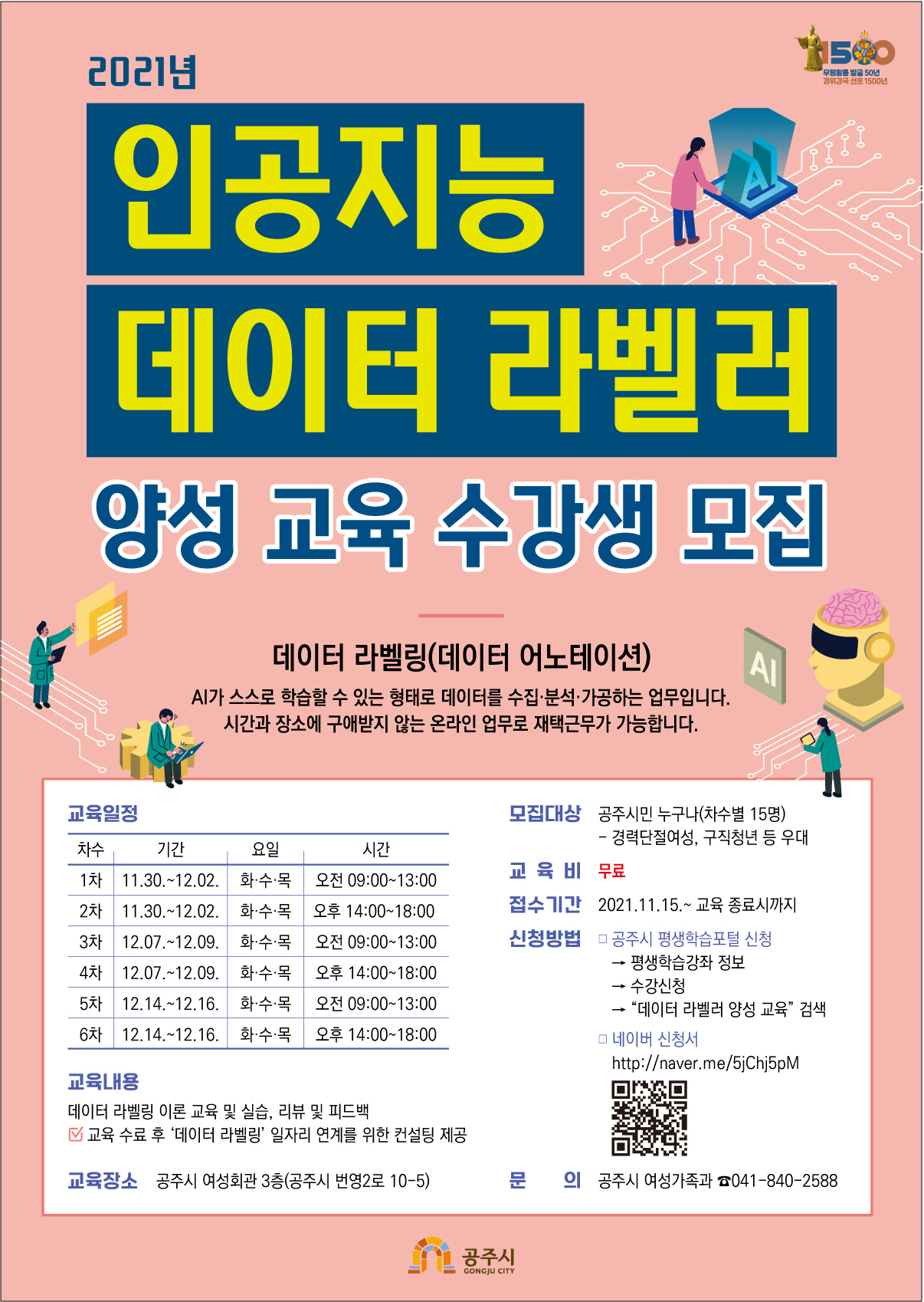 | 교육장소 | 공주시 여성회관 3층(공주시 번영2로 10-5) | 정원 | 15 |