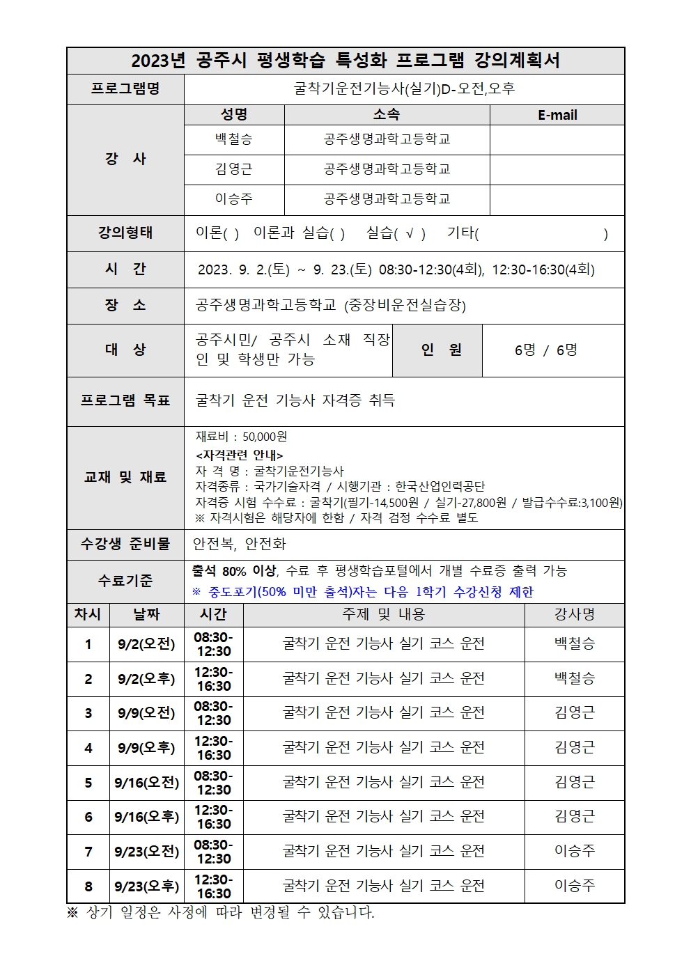 | 강의계획서 | 강의계획서(게시용)-굴착기운전기능사(실기)D-오전,오후001.jpg | ||